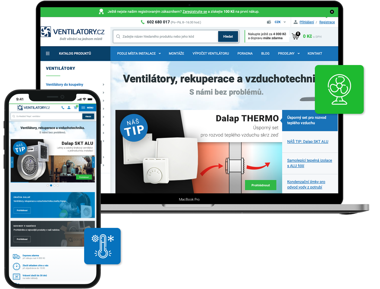 Když k nám klient přecházel, měl už celou řadu zákazníků. To znamená také spoustu nasbíraných dat. Veškeré údaje o objednávkách, fakturách, zboží i uživatelích jsme zvládli importovat do našeho řešení. VENTILÁTORY.cz tak nepřišli ani o bajt svých dat.