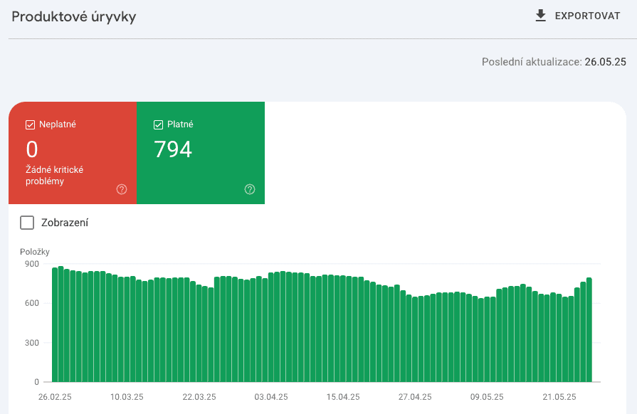 OK, máme na e-shopu v kooperaci s dodavatelem řešení vymazleně udělaná strukturovaná data.