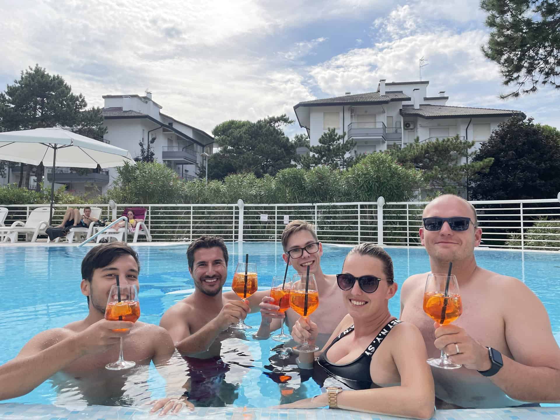 Velmi rychle jsme se naladili na italskou vlnu, takže jsme si po obědě dopřáli siestu u bazénu a povídali si u drinku 🙂 Večery jsme trávili degustováním italských dobrot – to vlastně platí pro celý týden 😀